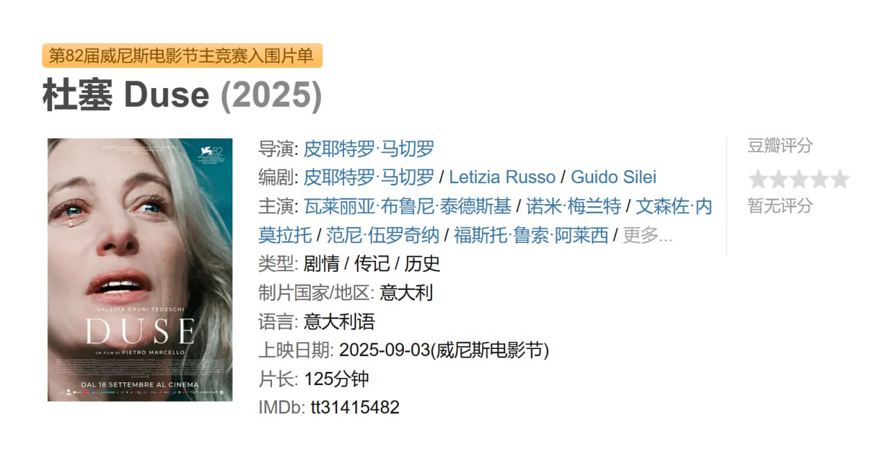 从辉煌舞台生涯退休后,女演员杜塞在意大利一战至法西斯崛起的动荡岁月里,重返剧场.