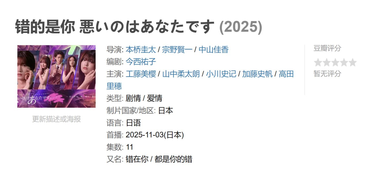 本剧改编自同名漫画,故事从派遣职员山本莉子(工藤美樱 饰)被公司突然解雇开始。失意返家的她,在楼梯上滑倒时被陌生的帅气上班族勤救下,并在对方的强势推进下,不知不觉与之共进晚餐,甚至去了酒店。这段相遇让莉子的人生急剧转向,被卷入爱与欲望的深渊。与此同时,靠同居女友养活的落魄乐队男椿拓真(山中柔太朗 饰),也背负着不能言说的秘密。谎言、暴行、杀意与疯狂交织,莉子、拓真与周围人物陷入无法逃脱的出轨地狱。