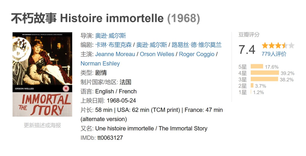不朽故事 Histoire immortelle (1968)