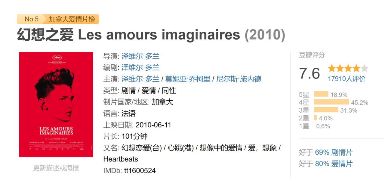 Francis(泽维尔·多兰 Xavier Dolan 饰)和Marie(莫妮亚·乔柯里 Monia Chokri 饰)是一对默契十足的异性好朋友。在一次晚宴上,他们碰到了刚来到这座城市的乡村男孩 Nicolas(尼尔斯·施内德 Niels Schneider 饰)。随着和这个漂亮的男孩的进一步交往,这两个平日亲密无间的好朋友却发现周遭的种种莫名发生了改变,似乎有一种新的情绪影响着彼此。不久,Francis和Marie发现自己都不知不觉地爱上了这个不可捉摸的少年Nicolas,而两个人昔日坚不可摧的友情也第一次面临着挑战。爱情和友情,到底哪一个才是他们真正的归宿呢?