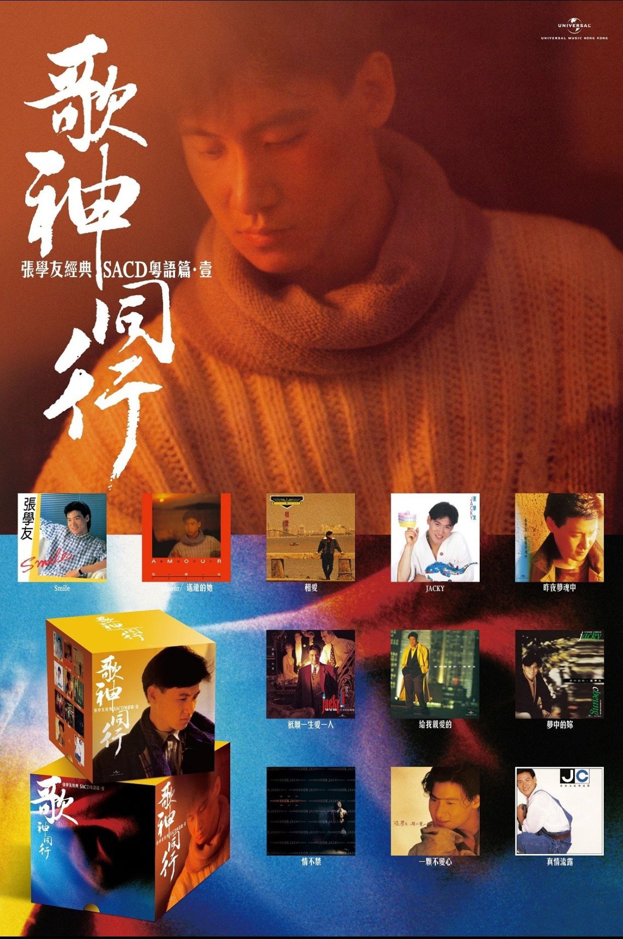 《歌神同行 张学友经典SACD粤语篇·壹》限量版是环球音乐推出的经典复刻合集,收录学友早年11张粤语经典专辑,从《Smile》的出道青涩,到《相爱》《给我亲爱的》的深情诠释,再到《一颗不变心》《真情流露》的金曲爆发,完整复刻SACD高音质版本,以礼盒形式呈现专辑封面与经典视觉,既是对“歌神”粤语歌坛黄金时期的全景式回溯,也是献给乐迷的收藏级听觉盛宴。