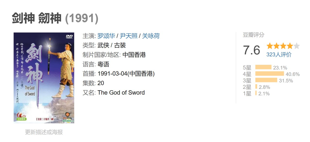 这是亚视一部优秀的武侠剧,演技派明星大联盟.当时,这些演员还不红,但是演技是不错的,而且今天都很出名了.此剧剧情新颖,也颇有内涵。两弟兄从小即受到父亲不平等的待遇,条件优越的哥哥就格外照顾弟弟,最后不得已弟弟出走流浪,遇到高人而改变一生命运。但是全剧最终的结局却令人意想不到.