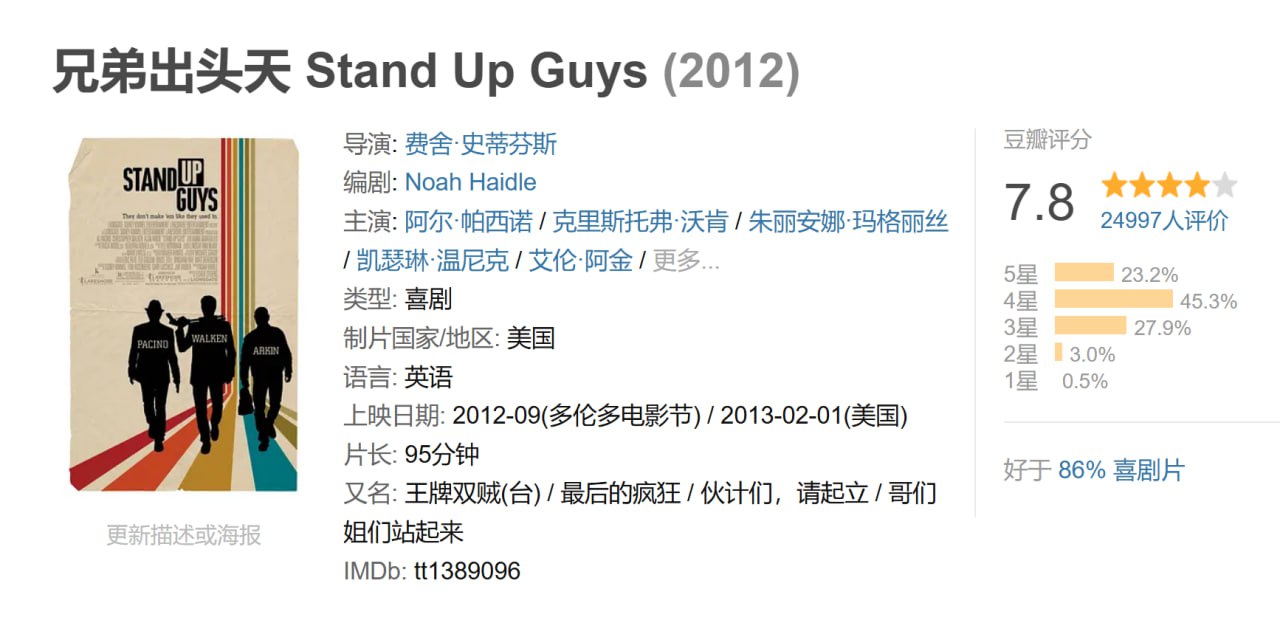 在经历了28年的牢狱之灾后,沃尔(阿尔·帕西诺 Al Pacino 饰)终于重新回到了自由的怀抱,久违的老友道克(克里斯托弗·沃肯 Christopher Walken 饰)前来迎接,两人都无法抑制各自内心的激动和喜悦。尽管在沃尔服刑期间,世界发生了翻天覆地的变化,但和老朋友之间的友情依然坚定而持久。之后,老友赫希(艾伦·阿金 Alan Arkin 饰)也加入了沃尔和道克的狂欢之中,他们一边回忆着旧日往事,一边尽情享受着自由带来的快乐和放纵。