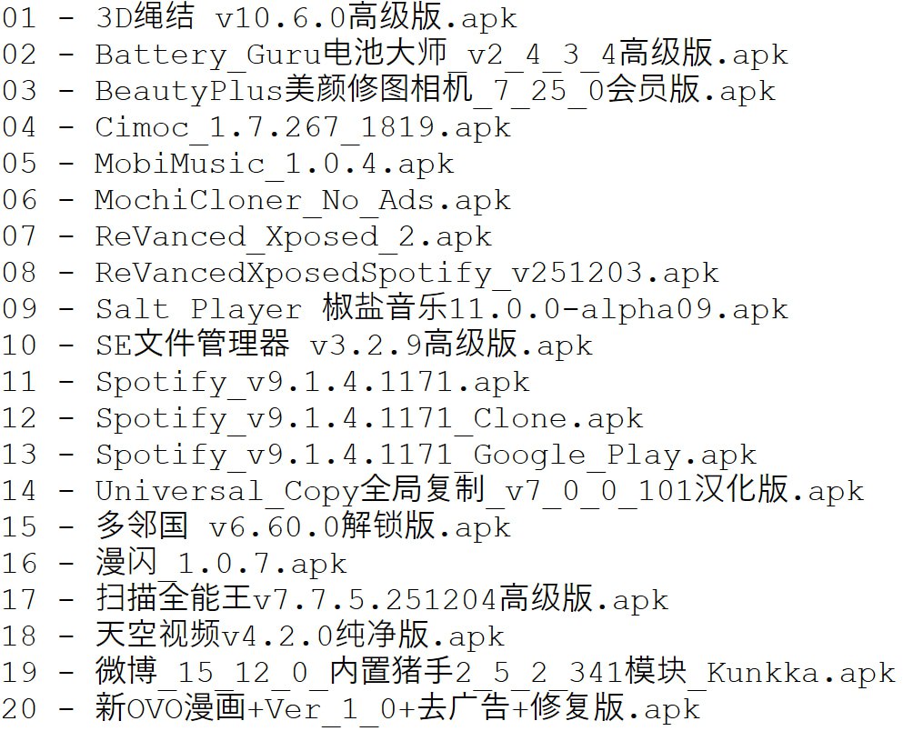 ps:所有软件功能自己百度了解。破解有风险,玩机需谨慎。