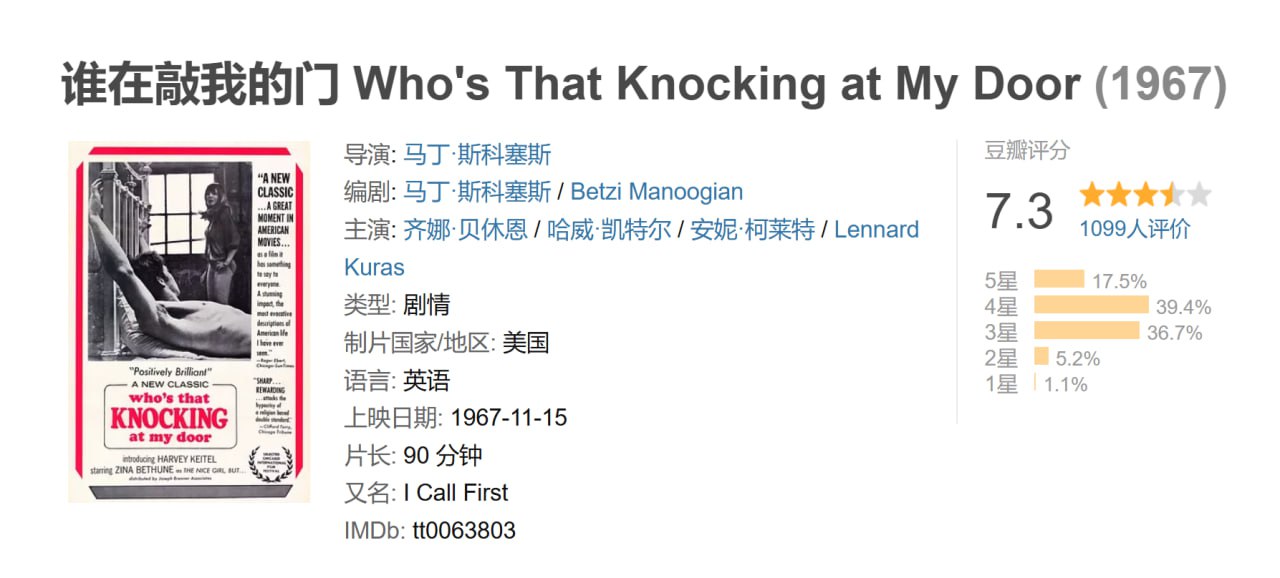 谁在敲我的门 Who's That Knocking at My Door (1967)
