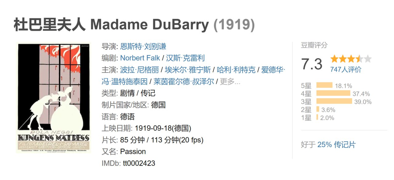 杜巴里夫人 Madame DuBarry (1919)