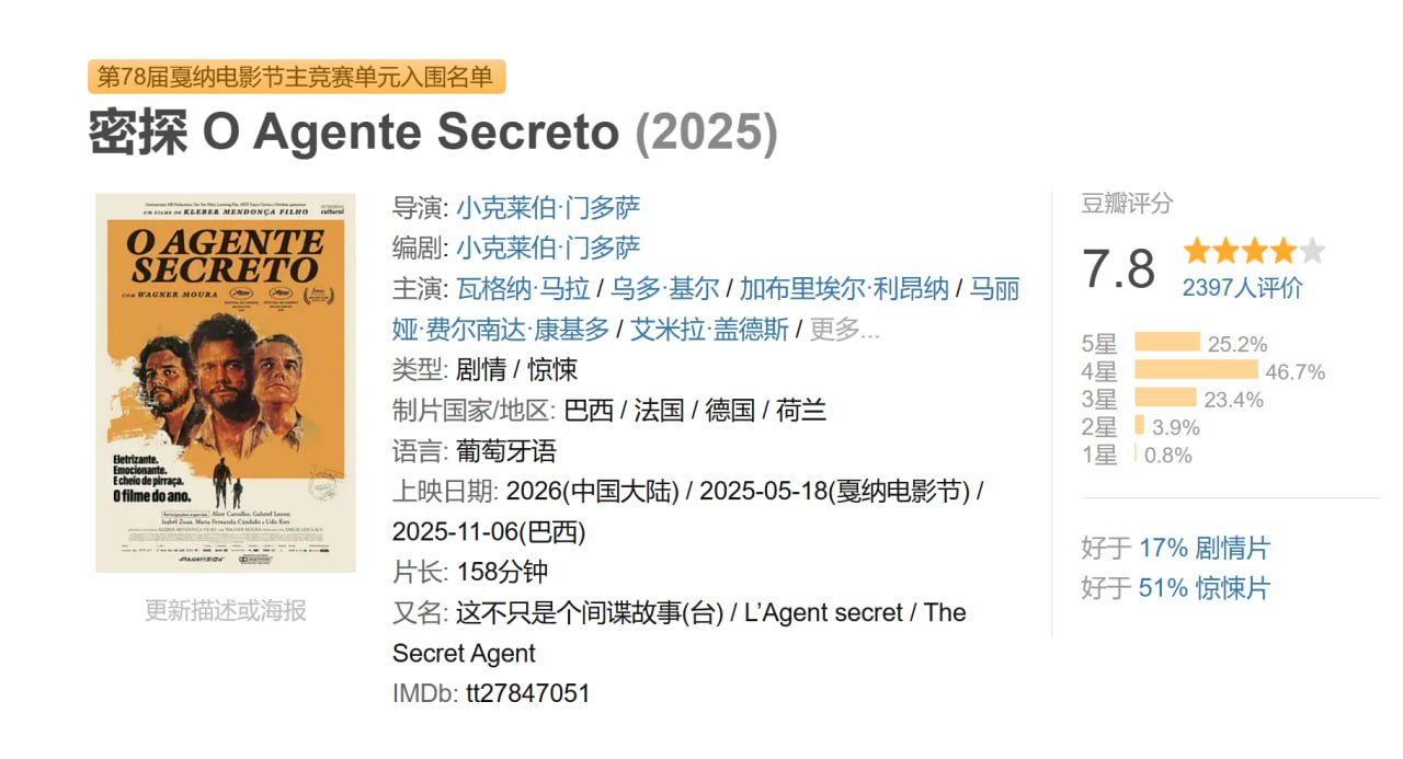 1977年,在被军事独裁统治折磨的巴西,四十多岁的马塞洛逃离了他混乱的过去,来到累西腓,希望在这里建立新的生活并与家人重修旧好。然而,他并未料到死亡威胁如影随形,笼罩在他的头顶。