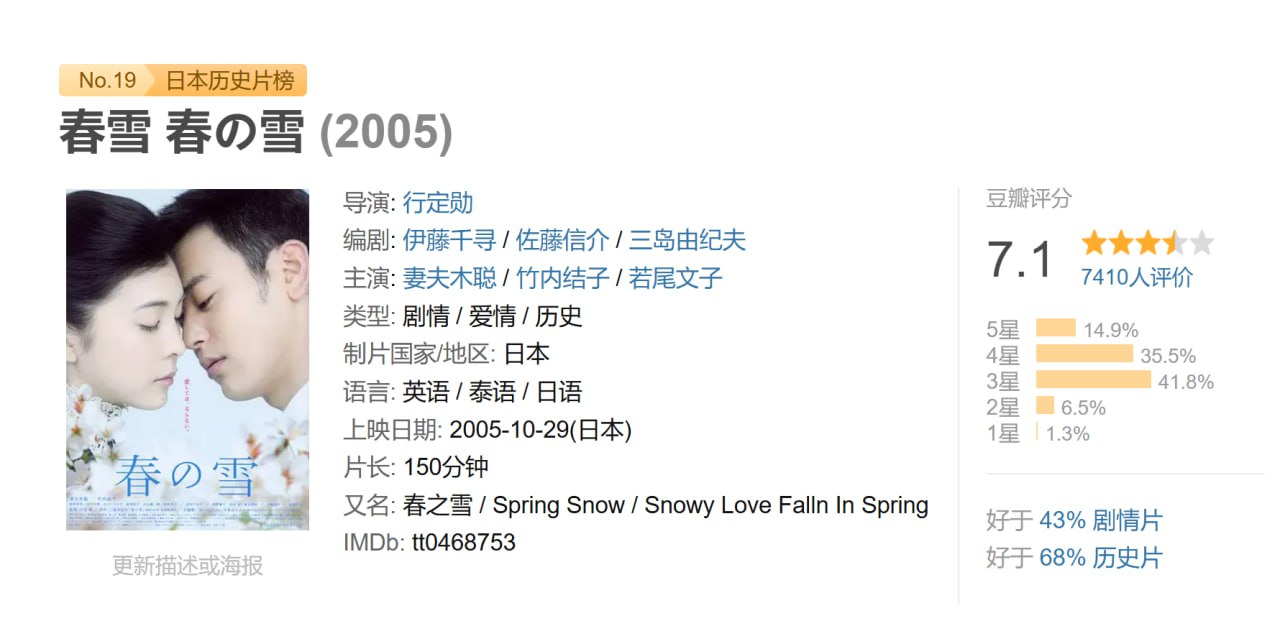 大正时代,出身贵族的松枝侯爵家嗣子松枝清显(妻夫木聪饰演),对青梅竹马的绫仓伯爵家的掌上明珠聪子(竹内结子饰演)情有独钟,但清显一直没有勇气向她表白,反而笨拙地示爱或者伤害,甚至因为误会中断联系。然而由于贵族彼此间的复杂考虑,聪子和治典殿下订了家族婚事,清显这才发现他对聪子的爱无法自拔,通过多方设法,使两人得以私下偷会,但恰恰这样的行为反让这对情侣都陷入绝望的苦恋而无法自拔,已是他人未婚妻的聪子怀孕后,真相无法掩藏,他们走向了爱情的尽头。