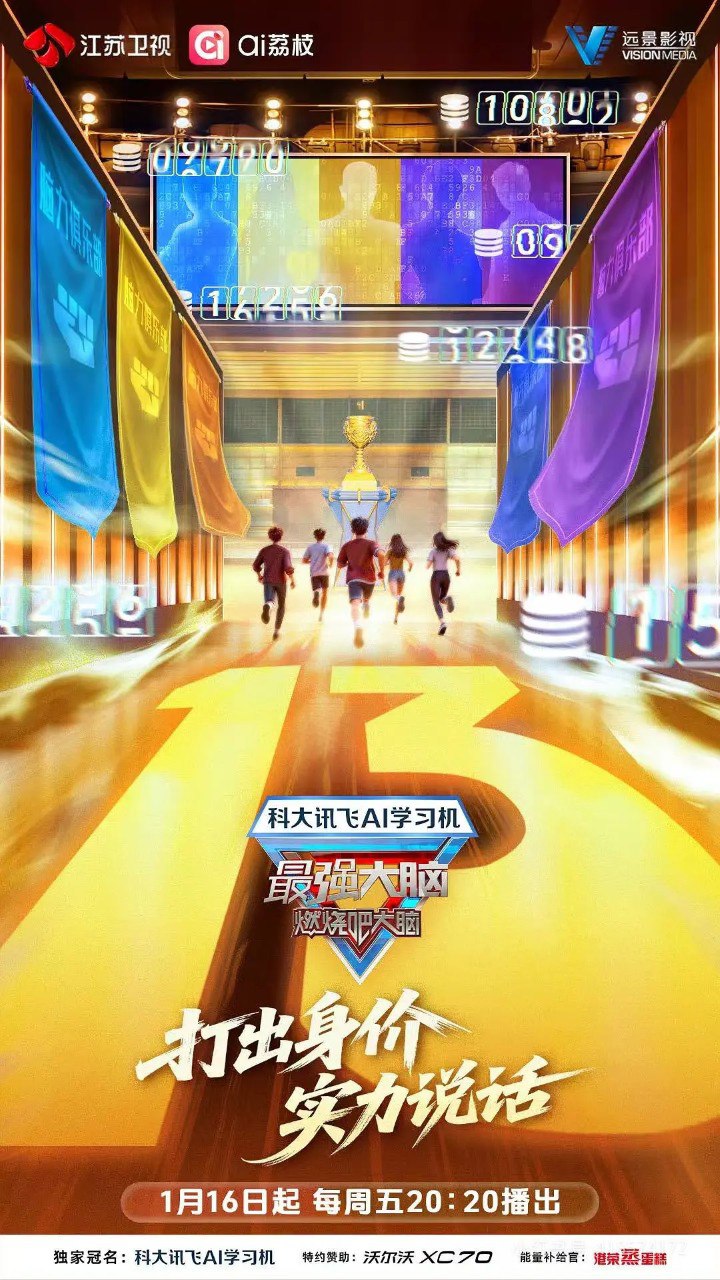 《最强大脑第十三季》是江苏卫视推出的节目,于2026年1月16日起每周五晚20:20在该台首播。节目由科大讯飞AI学习机独家冠名播出。