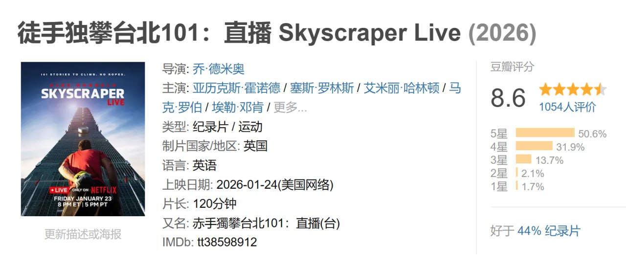 徒手独攀台北101:直播 Skyscraper Live (2026) ...