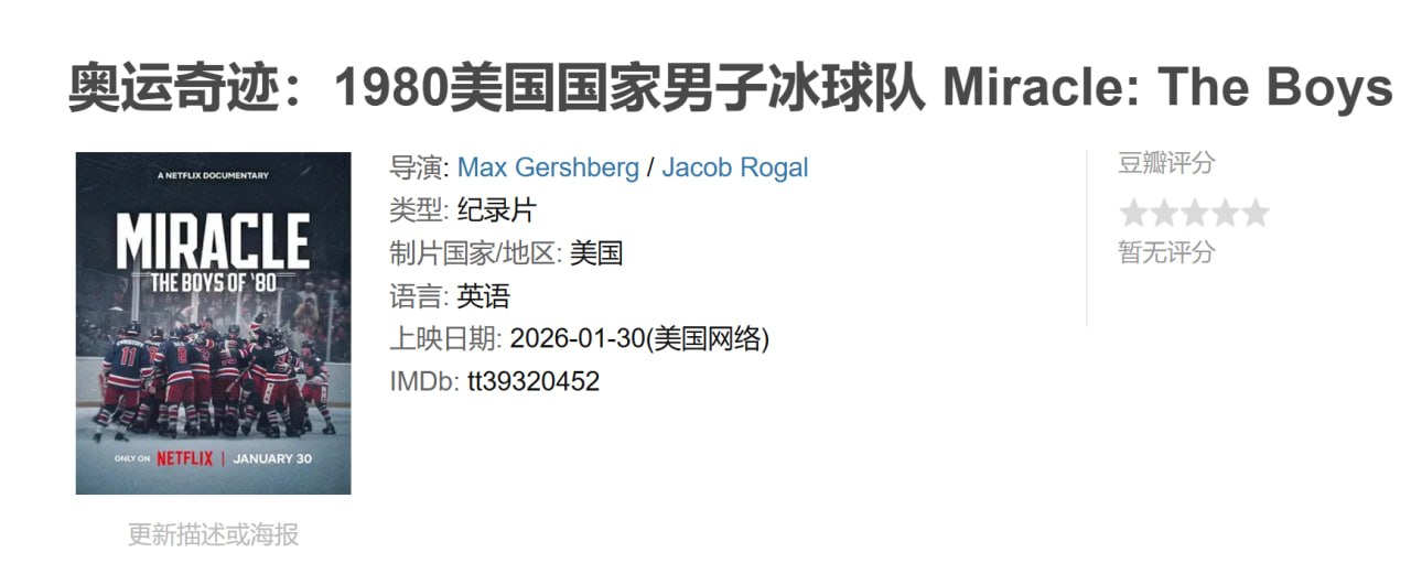 奥运奇迹:1980美国国家男子冰球队 Miracle: The Boys of ’80 (2026)