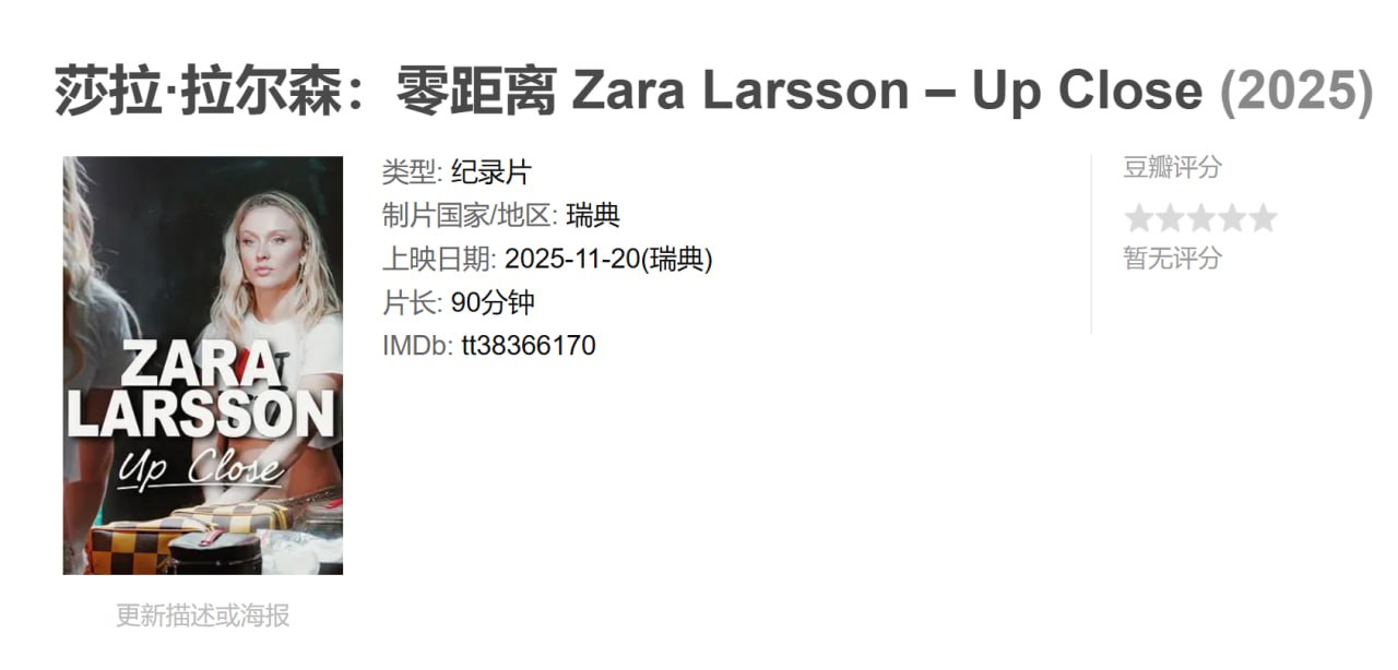 莎拉·拉尔森:零距离 Zara Larsson – Up Close (2025) ...