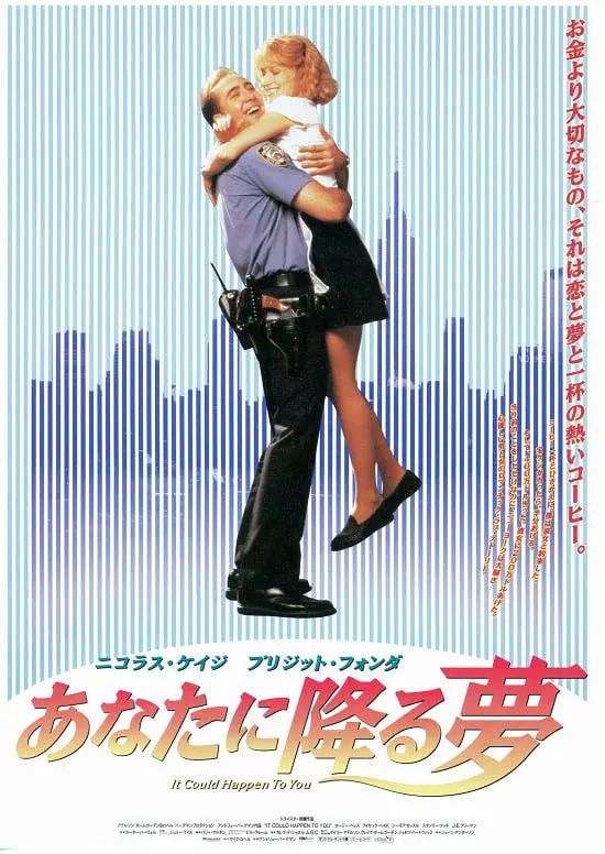 查理(尼古拉斯•凯奇)是个善良、温和、喜欢孩子的好警察,却有一个虚荣自私的妻子,他们像所有不搭调的夫妻一样吵闹不断,但是查理总是忍让。一天查理的妻子说梦见父亲并认定有特殊含义,叮嘱查理买彩票。善良的查理在早餐中没有钱付给伊娃小费,就约定如果彩票中了奖就一人分一半,如果没中奖则第二天来把小费补上。没有当真的伊娃没料到奇迹的事情发生了,查理的彩票一下子中了四百万美元巨奖!信守承诺的查理把一半的奖金分给了伊娃,让伊娃从此摆脱了破产穷困的生活,尽管惹来妻子的牢骚不满。晋身富豪的妻子在上流社会谈笑风生,而查理与同样善良热情的伊娃越走越近。妻子把二人告上法庭,要回属于自己的财产,查理与伊娃败诉。打算离开这个城市的二人最后一夜在自己的咖啡店相处,给了雨夜中毫无分文的黑人一碗热汤。这个在纽约城打拼了十年的黑人记者把这一夜的经历写在报纸上,全纽约城的人都知道了这对善良人的故事,纷纷给他们寄来自己的小费。信件如雪片,查理和伊娃靠着全纽约城善良人们的小费,赎回了自己的咖啡店,过上了幸福的生活。