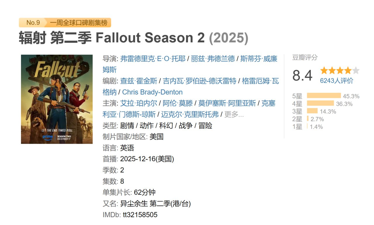第二季将延续第一季结局的故事,带领观众穿越莫哈韦荒原,到达世界末日后的城市新维加斯。
