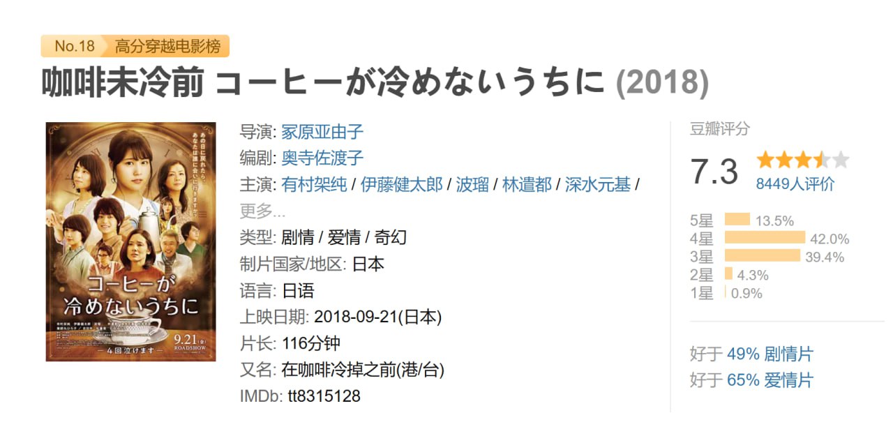 咖啡未冷前 コーヒーが冷めないうちに (2018)