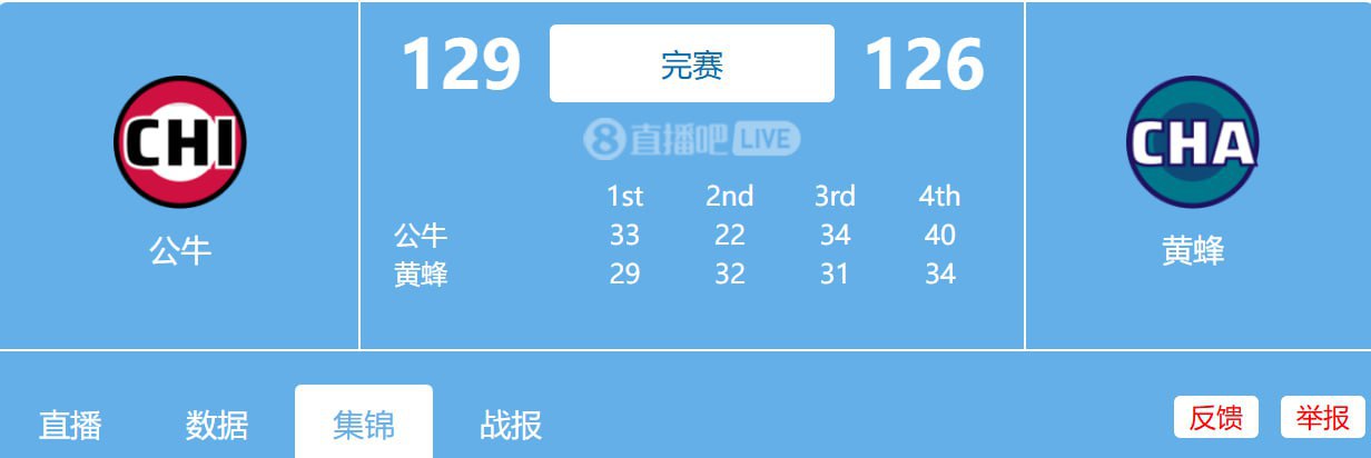 25-26赛季NBA常规赛 公牛vs黄蜂比赛录像