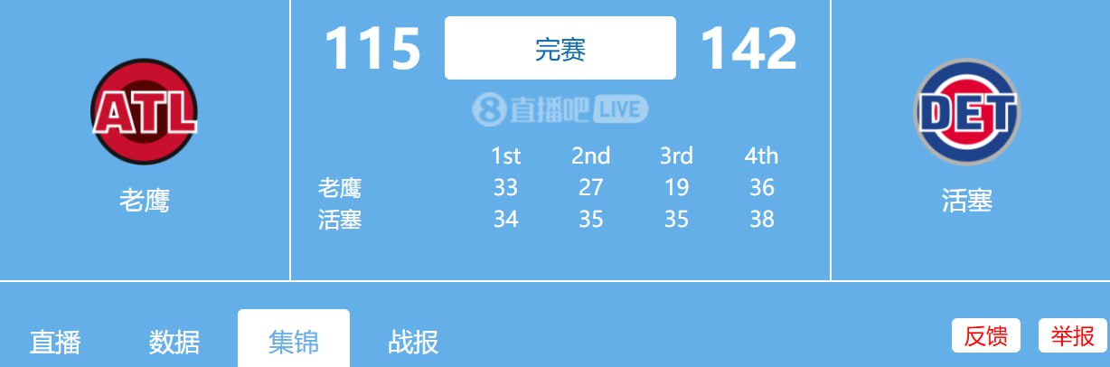 25-26赛季 NBA常规赛 老鹰vs活塞全场录像